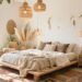 - Key accessories: Paper lantern pendant, handmade vase, wool throw