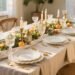 Runners are the stealth MVP of small centerpieces. A narrow fabric runner or rustic wood plank elongates the table visually, then you can sprinkle in tiny accents without eating into plate space.