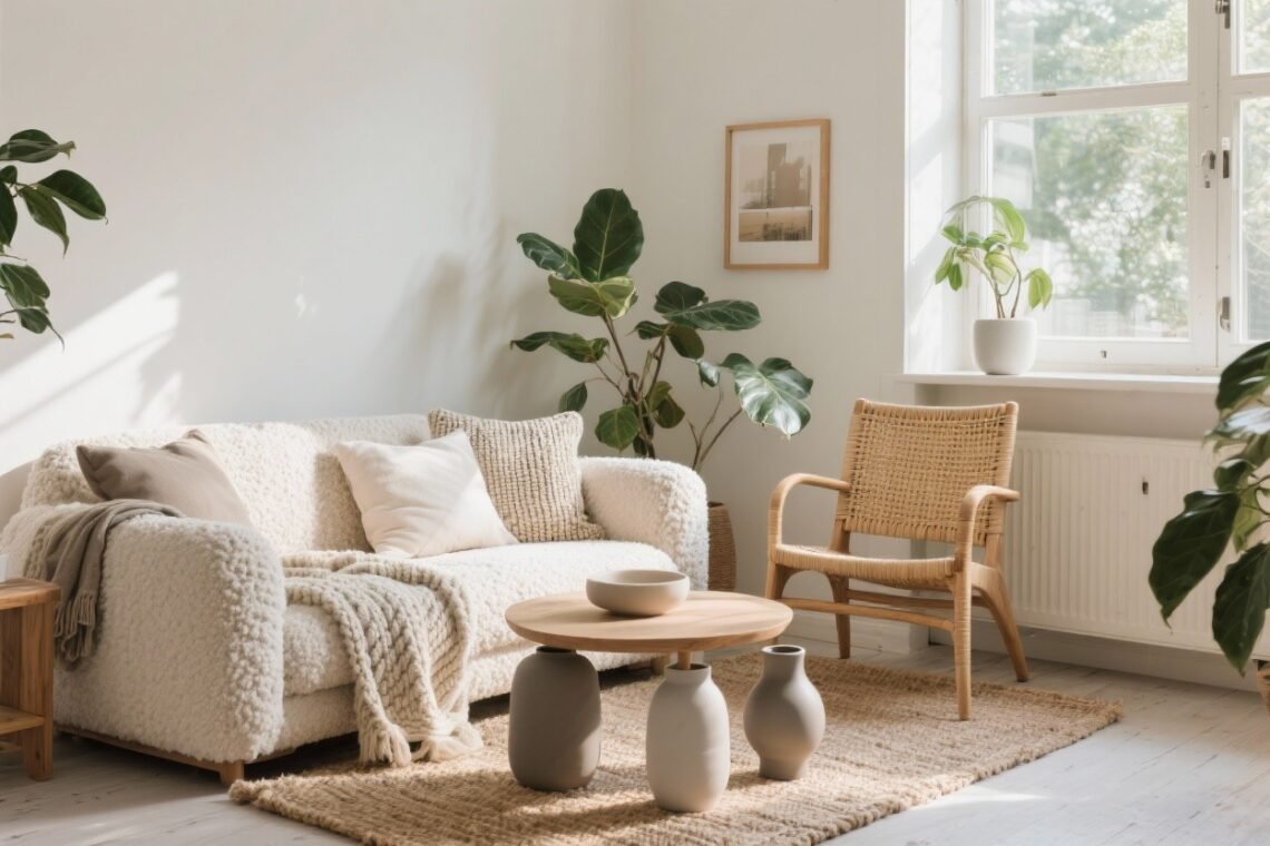- One chunky piece per zone (a loop-pile rug or a bouclé chair) is enough.